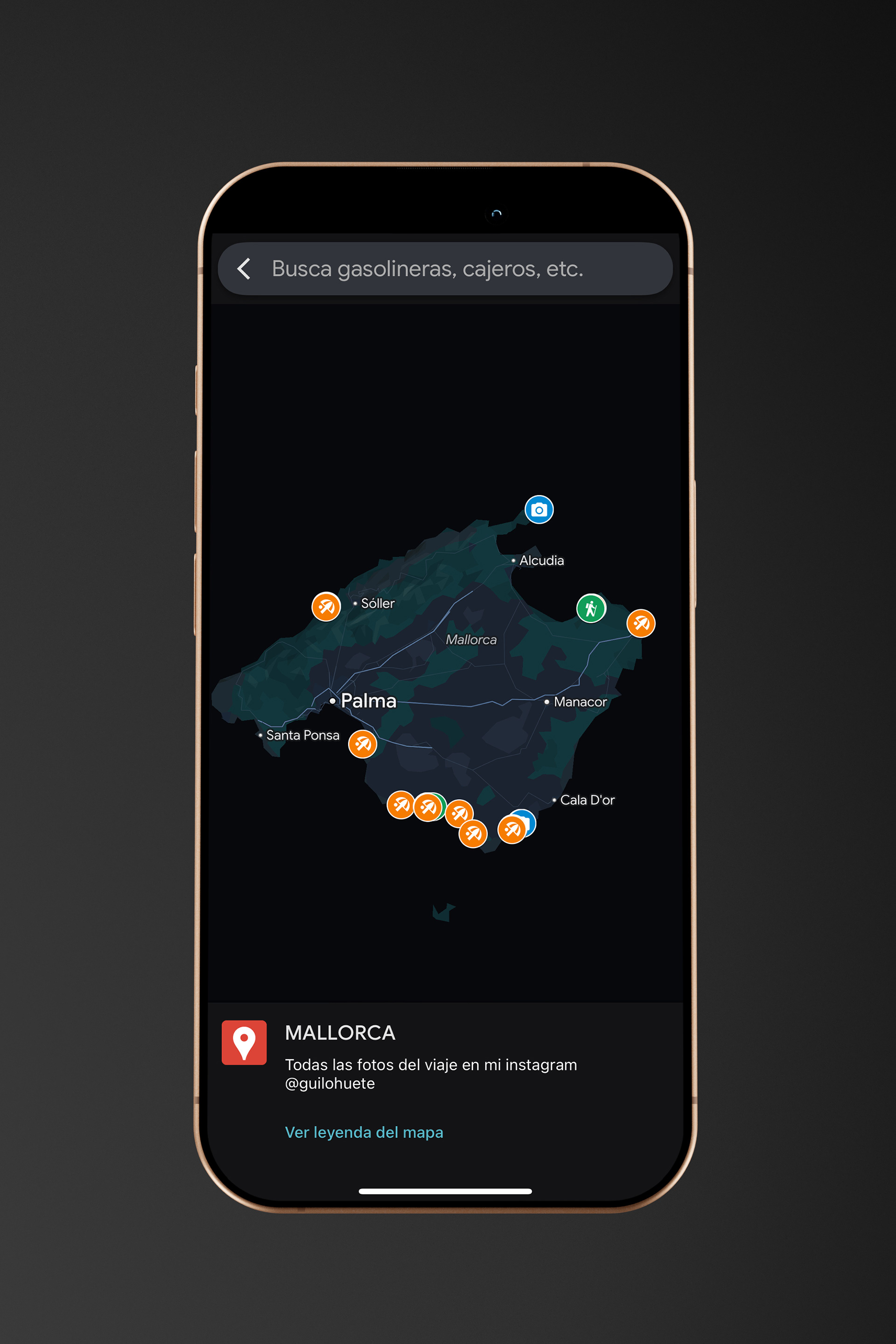 Aquí tenéis el mapa de la isla de Mallorca, totalmente personalizado, con todo lo que hicimos. Todos los spots que visitamos, playas, calas, miradores...